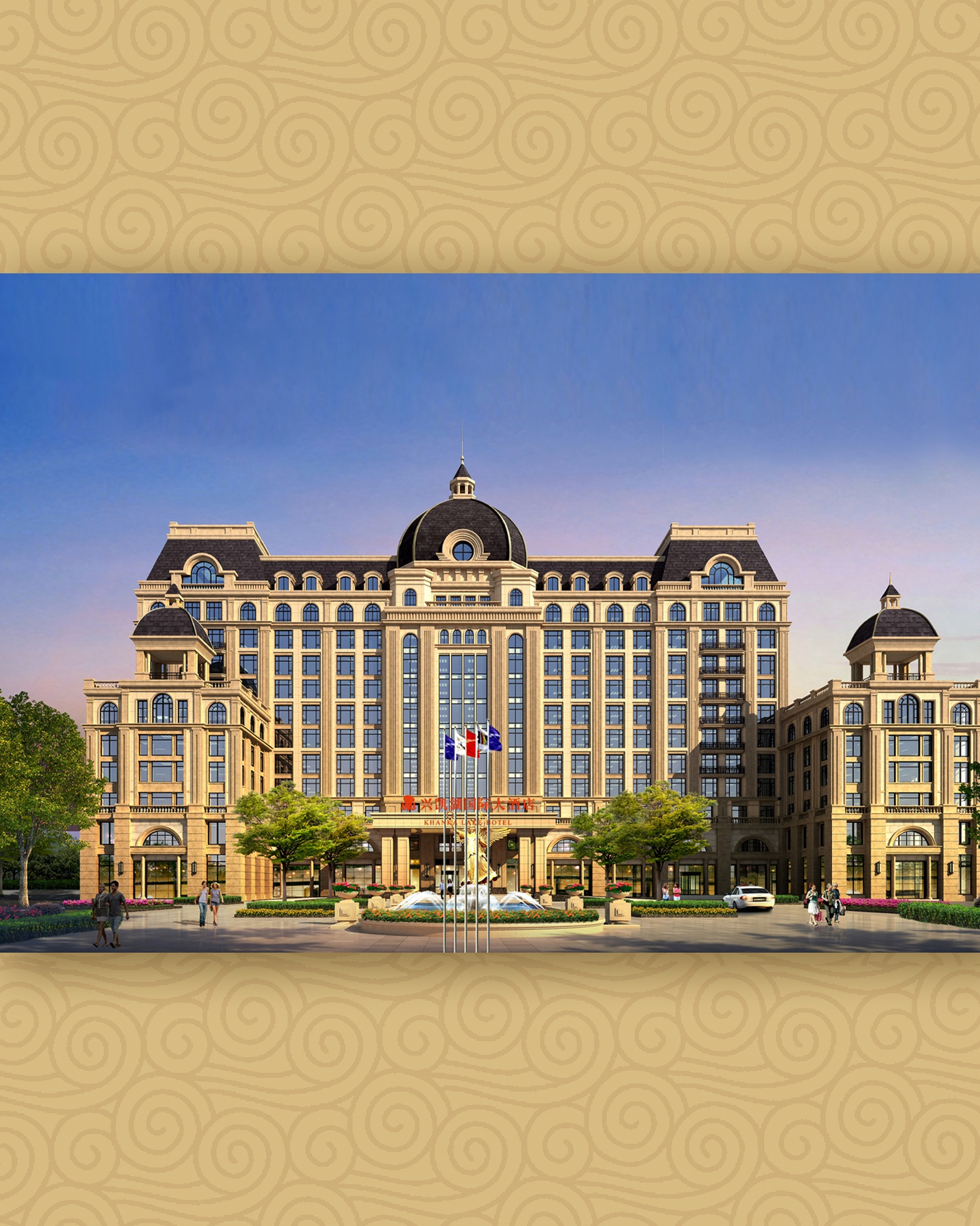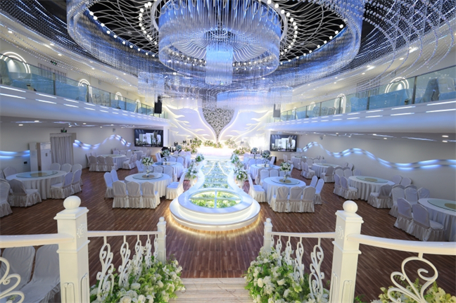 皇宮廳—金碧輝煌、皇宮式裝修,面積1038㎡,層高8.6米,配備愛(ài)情階梯、軌道威亞、二層觀(guān)禮臺(tái)、浪漫燈光秀、旋轉(zhuǎn)升降舞臺(tái)、頭頂天幕連接開(kāi)合大屏。可承接50桌的大型宴會(huì),也可舉辦600人的大型會(huì)議;還可用作會(huì)展、車(chē)展場(chǎng)地,每逢節(jié)假日還為市民上演文藝節(jié)目。