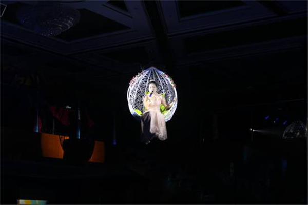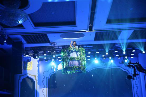 此次文藝匯演的亮點(diǎn),采用真人威亞設(shè)備。人未至,聲已到,隨著歌手從空中徐徐而降,配合干冰舞臺(tái)效果,整個(gè)過程宛如仙境,美輪美奐。