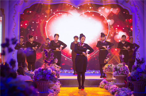 總結(jié)大會(huì)結(jié)束后,喜事匯婚慶的督導(dǎo)服務(wù)禮儀展示拉開了文藝聯(lián)歡晚會(huì)的序幕。